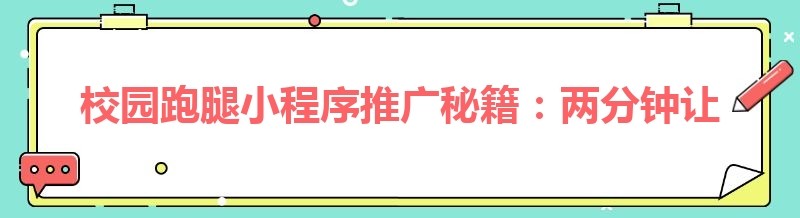 校园跑腿小程序推广秘籍:两分钟让你轻松掌握!
