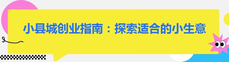小县城创业指南:探索适合的小生意项目