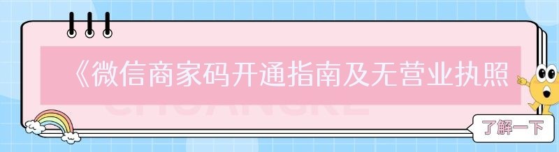 《微信商家码开通指南及无营业执照开通方法》