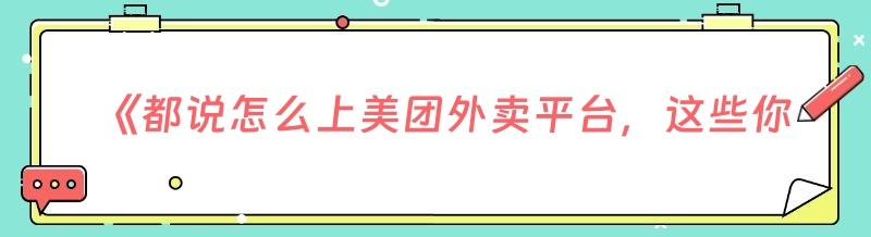 《都说怎么上美团外卖平台,这些你都知道吗!》