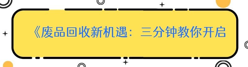 《废品回收新机遇:三分钟教你开启废品回收站之旅》