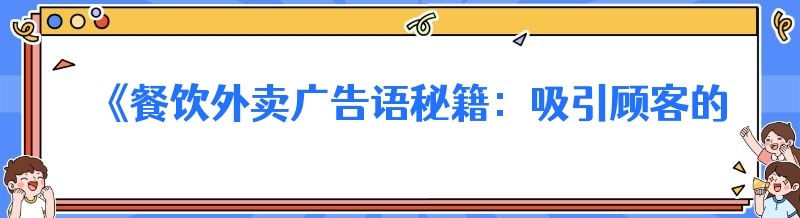 《餐饮外卖广告语秘籍:吸引顾客的绝佳法宝》