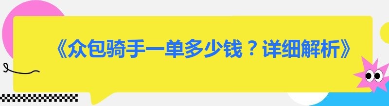 《众包骑手一单多少钱?详细解析》