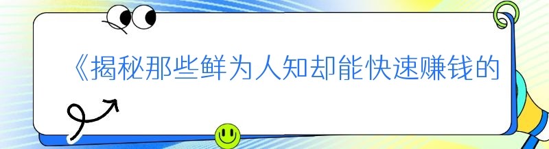 《揭秘那些鲜为人知却能快速赚钱的偏门项目》