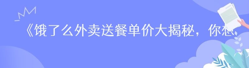 《饿了么外卖送餐单价大揭秘,你想知道的都在这里!》