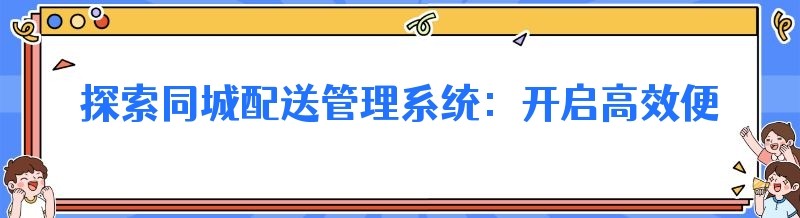探索同城配送管理系统:开启高效便捷的城市物流新时代