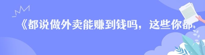 《都说做外卖能赚到钱吗,这些你都知道吗!》
