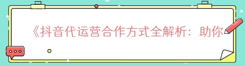 《抖音代运营合作方式全解析:助你找到最佳伙伴》