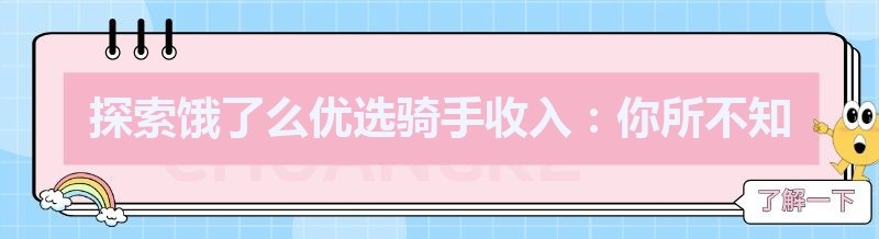 探索饿了么优选骑手收入:你所不知道的那些事儿
