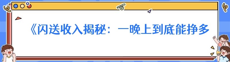 在当今的城市生活中,闪送作为一种快速、便捷的配送服务,越来越受到人们的关注。许多人都对闪送员的收入感到好奇,尤其是关于一晚上能挣多少钱的问题。今天,我们就来深入探讨一下这个话题。