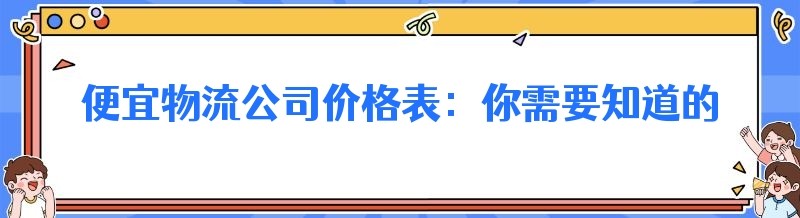 在当今的商业世界中,物流成本是许多企业和个人关注的重点。找到一家价格合理且服务优质的物流公司对于降低成本、提高效率至关重要。本文将为您提供便宜物流公司价格表的相关信息,帮助您做出明智的选择。