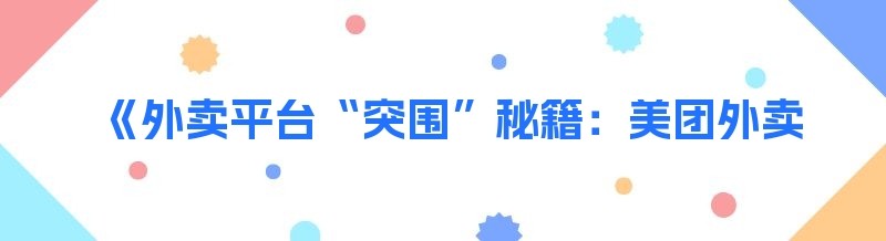 《外卖平台“突围”秘籍:美团外卖提升之道》