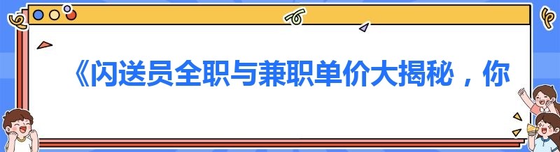 《闪送员全职与兼职单价大揭秘,你想知道的都在这里!》