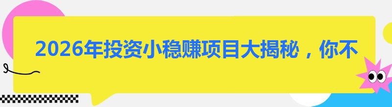 2026年投资小稳赚项目大揭秘,你不容错过!