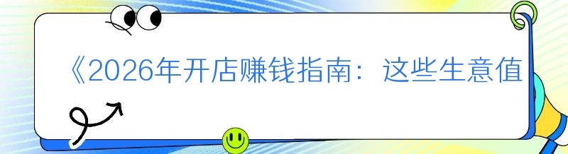 《2026年开店赚钱指南:这些生意值得一试》