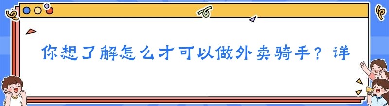 你想了解怎么才可以做外卖骑手?详情都在这!
