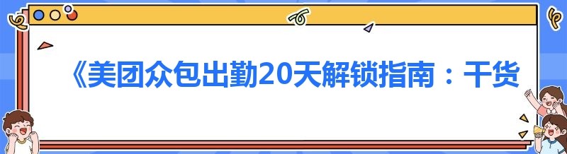 《美团众包出勤20天解锁指南:干货满满等你来》
