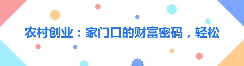 农村创业:家门口的财富密码,轻松实现赚钱梦想