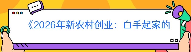 《2026年新农村创业:白手起家的机遇与策略》