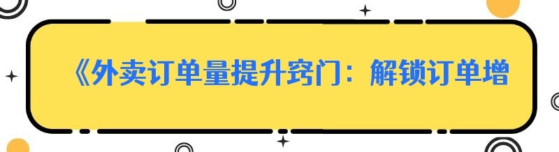 编辑 《外卖订单量提升窍门:解锁订单增长的密码》