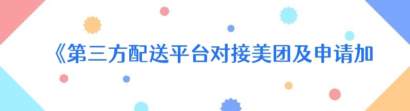 《第三方配送平台对接美团及申请加入美团外卖全攻略》