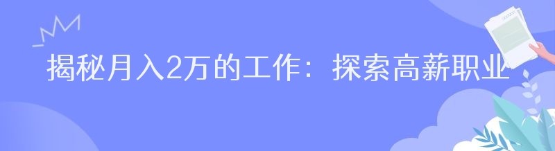 揭秘月入2万的工作:探索高薪职业的奥秘