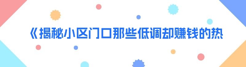 《揭秘小区门口那些低调却赚钱的热门生意》