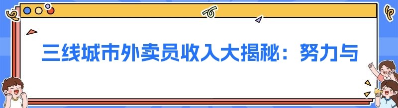 在城市的大街小巷,我们总能看到外卖员忙碌的身影。他们风里来雨里去,为人们的生活带来了极大的便利。那么,在三线城市送外卖,一个月究竟能赚多少钱呢?这是许多人都关心的问题。今天,就让我们一起来揭开这个谜底。