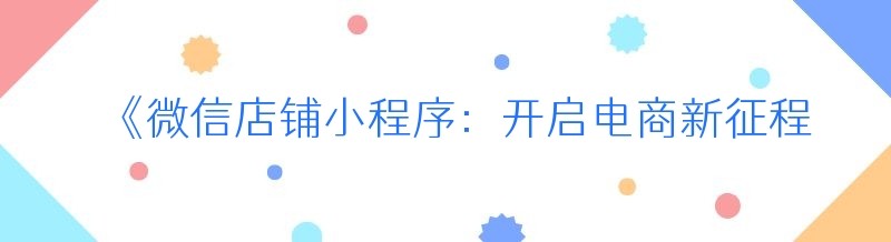 在当今数字化时代,微信已经成为人们生活中不可或缺的一部分。而微信店铺小程序,则为商家提供了一个全新的销售渠道,让他们能够更便捷地与消费者互动,拓展业务范围。那么,如何开启微信店铺小程序呢?下面就为大家详细介绍。