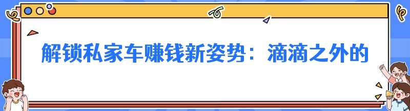 编辑 解锁私家车赚钱新姿势:滴滴之外的多元选择