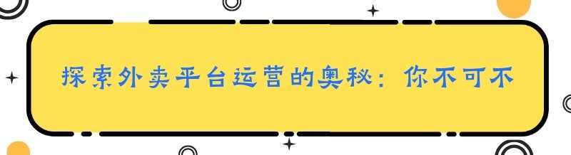 探索外卖平台运营的奥秘:你不可不知的干货