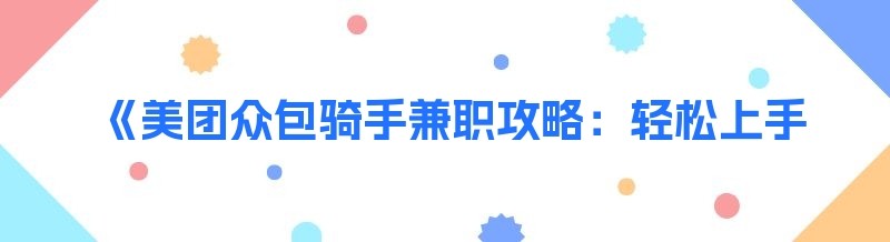 《美团众包骑手兼职攻略:轻松上手的实用方法》