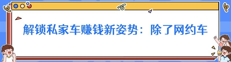 解锁私家车赚钱新姿势:除了网约车,还有这些途径!