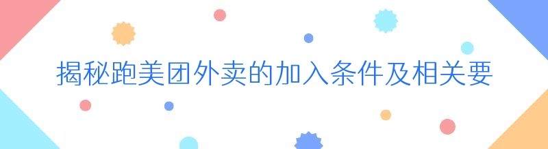 揭秘跑美团外卖的加入条件及相关要点