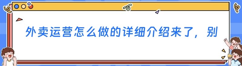 外卖运营怎么做的详细介绍来了,别人我不告诉他!