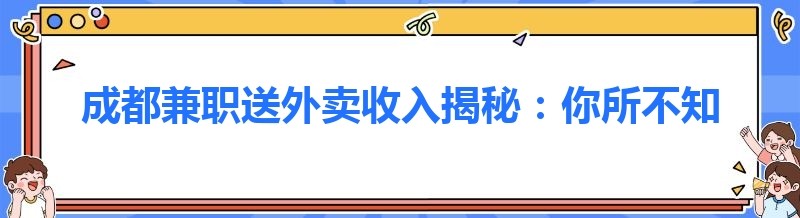 成都兼职送外卖收入揭秘:你所不知道的干货