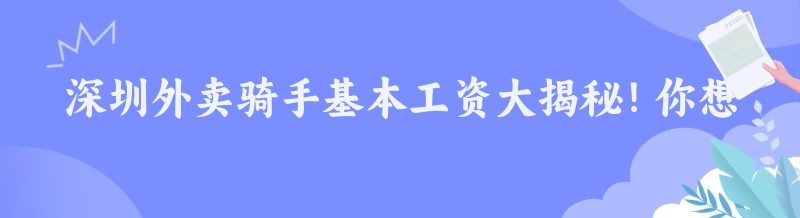 深圳外卖骑手基本工资大揭秘!你想知道的都在这里