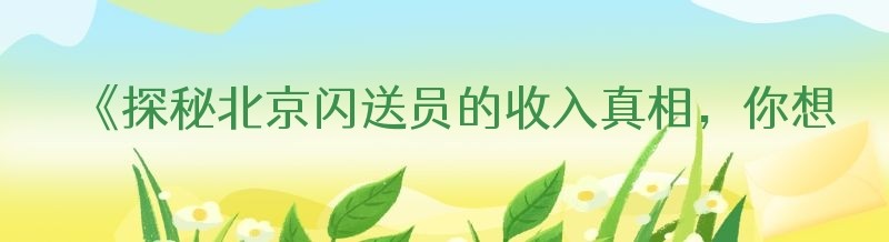 《探秘北京闪送员的收入真相,你想知道的都在这里!》