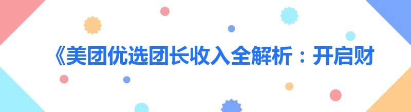 《美团优选团长收入全解析:开启财富新机遇》