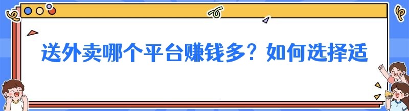 送外卖哪个平台赚钱多?如何选择适合自己的平台与模式