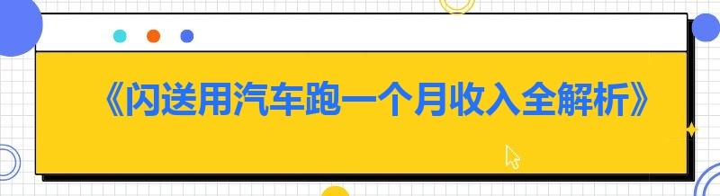 根据以上因素的影响,闪送用汽车跑一个月的收入大致在几千元到上万元之间。具体收入情况还需要根据个人的实际情况来确定。