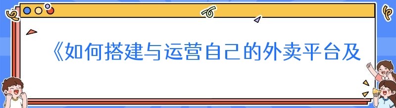 《如何搭建与运营自己的外卖平台及实现接单配送》