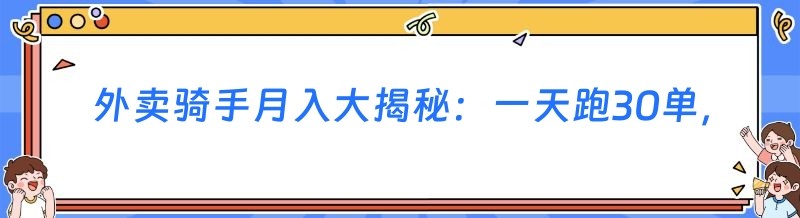 外卖骑手月入大揭秘:一天跑30单,一个月能赚多少钱?