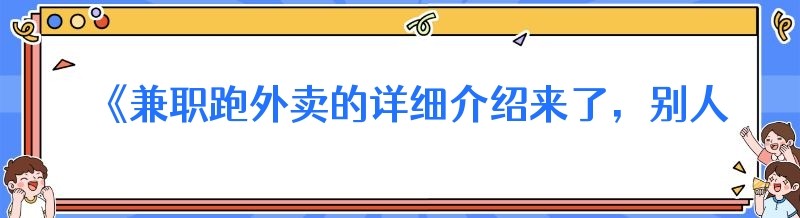 《兼职跑外卖的详细介绍来了,别人我不告诉他!》