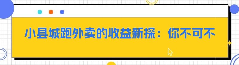 小县城跑外卖的收益新探:你不可不知的那些事儿
