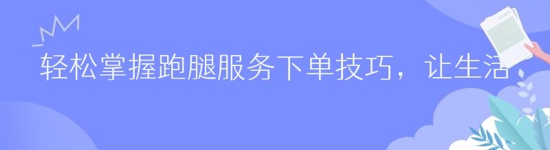 在当今快节奏的生活中,跑腿服务已经成为了越来越多人的选择。无论是送文件、取快递、买东西,还是代办事,跑腿服务都能够帮助我们节省时间和精力。但是,对于一些新手来说,可能不知道如何下单跑腿服务。下面,就为大家介绍一些轻松搞定跑腿服务下单的方法。