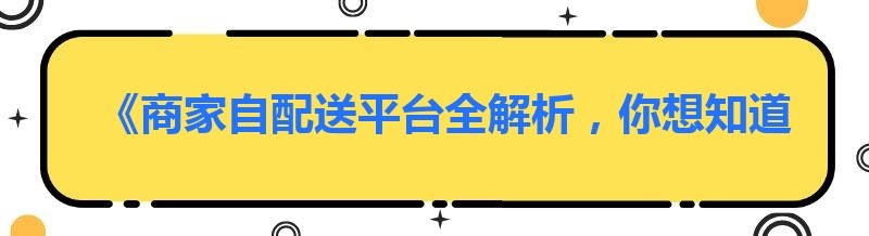 《商家自配送平台全解析,你想知道的都在这里!》