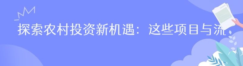 探索农村投资新机遇:这些项目与流程你需知晓