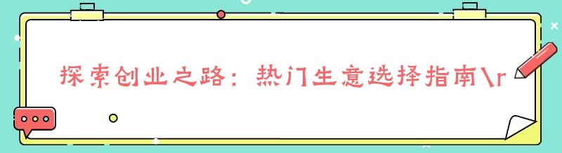 在人生的道路上,创业是许多人追求梦想和实现财富自由的重要途径。然而,面对众多的创业选择,很多人都会感到迷茫和困惑,不知道该从何下手。如果你也正处于这样的困境,那么这篇文章将为你提供一些有价值的建议和热门的生意选择,帮助你开启成功的创业之旅。
