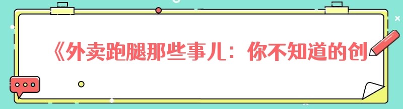 《外卖跑腿那些事儿:你不知道的创业新机遇》